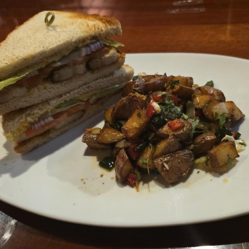 Sour Dough, bacon or turkey bacon, lettuce, tomato, aji mayo and served with french fries or hash browns