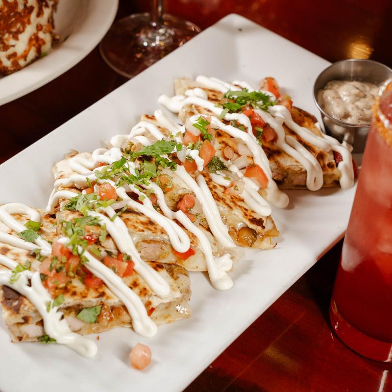 Marinaded skirt steak served with fajita veggies, crema fresca, a slice of avocado, Cotija cheese, and cilantro • $15.25 | $22.00