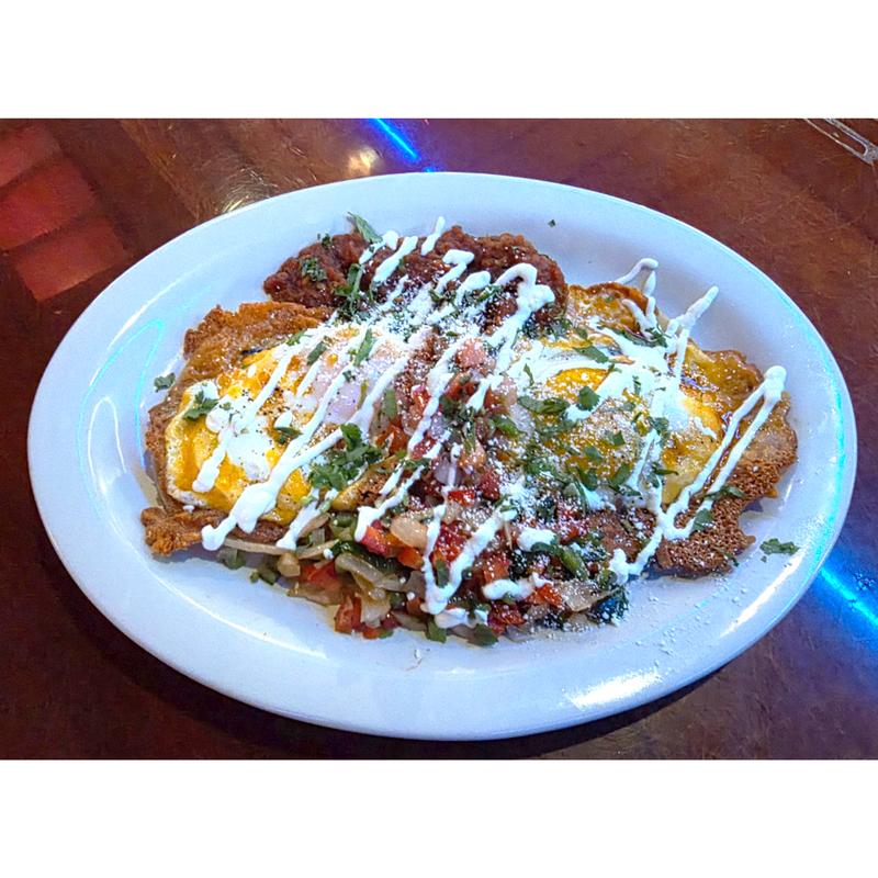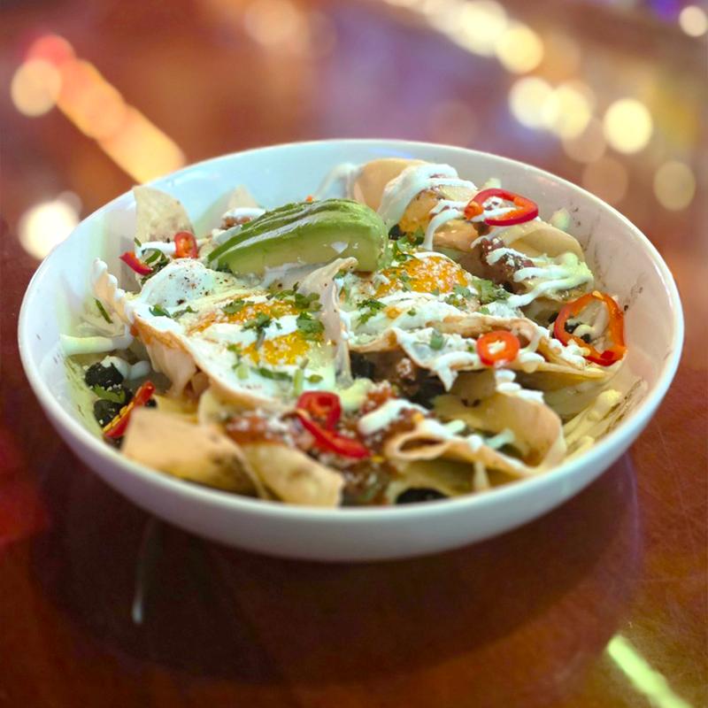 Queso blanco, black beans, salsa roja, crema fresca, avocado, fried egg, cotija, cilantro